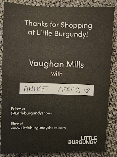 I had such a great experience at Little Burgundy @ Vaughan Mills! š„° From the moment I walked in, I was greeted warmly and made to feel like a valued customer. Disha, Gautam, Aniket and the rest of the staff were not only very friendly but also incredibly knowledgeable and helpful. They took the time to understand what I was looking for, offered great recommendations, and made sure I found the perfect pair of shoes that fit both my style and comfort needs. What stood out most was their patience and genuine interest in helping me and they are super friendly and fun!!! (trying their best to learn tagalog too!) šš¤ Not once did I feel rushed or pressured to buy. They even went above and beyond their service helping me with my attention to detail concern. š¤ I left the store feeling confident in my purchase and genuinely impressed by the service. This kind of service and care is rare these days, and it definitely earned my loyalty. Highly recommend this store to anyone looking for both quality shoes and top-notch...
