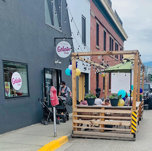 The staff was wonderful and polite. The prices were competitive; I would go again if I am feeling like a cold dessert. I really liked how you could choose two flavours for a small cup. The flavours I chose were apricot and pear with black currant vegan gelato. They were floral and delicate in flavour, wonderfully light but satisfying. I would try both of their flavours again, but I wouldn't be apprehensive to try their other flavours as well. I highly recommend going here if you'd like a chilled treat on an outdoor patio during the heat of the summer. Also, I loved their selection of chocolate, sweets,and gin. The price for one bottle of their niche gin was...