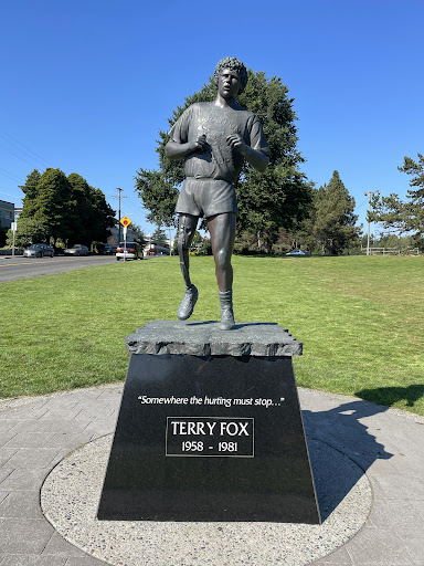 Terry Fox Staue The Terry Fox statue located in Beacon Hill Park, Victoria, Canada is a bronze sculpture that was installed in the park in 2000 near the Mile Zero monument. The statue was created by Canadian sculptor Nathan Scott and depicts Terry Fox, a Canadian hero and cancer research activist who attempted to run across Canada in 1980 to raise money and awareness for cancer research. The statue depicts Terry Fox running with his signature prosthetic leg and is meant to capture his determination and spirit. It is situated on a granite pedestal and includes a plaque that tells the story of Terry Fox's life and legacy. Terry Fox is a Canadian hero who is known all around the world. This plaque is displayed on the base of Terry's statue in Victoria, British Columbia, at Mile 0 of the TransCanada Highway. As described in the wording of the plaque, Terry started his run across Canada at the eastern end of the TransCanada Highway, in St John's, Newfoundland. Remarkably, he ran the equivalent of a marathon every single day for 143 days - on one healthy leg and one prosthetic leg! Had he been able to complete his dream, his journey would have ended at the exact spot in Victoria where his statue and this plaque now stand. The plaque reads: "Terry Fox was born in Winnipeg, Manitoba, and raised in Port Coquitlam, British Columbia, a community near Vancouver on Canada's west coast. An active teenage involved in many sports, Terry was only 18 years old when he was diagnosed with osteogenic sarcoma (bone cancer) and forced to have his right leg amputated 15 centimetres (six inches) above the knee in 1977. While in hospital, Terry was so overcome by the suffering of other cancer patients, many of them young children, that he decided to run across Canada to raise money for cancer research. He would call his journey the Marathon of Hope. After 18 months and running over 5,000 kilometres (3,107 miles) to prepare, Terry started his run in St. John's, Newfoundland on April 12, 1980 with little fanfare. Although it was difficult to garner attention in the beginning, enthusiasm soon grew, and the money collected along his route began to mount. He ran 42 kilometres (26 miles) a day through Canada's Atlantic provinces, Quebec and Ontario. It was a journey that Canadians never forgot. However, on September 1st, after 143 days and 5, 373 kilometres (3,339 miles), Terry was forced to stop running outside of Thunder Bay, Ontario because cancer had appeared in his lungs. An entire nation was stunned and saddened. Terry passed away on June 28, 1981 at age 22. The heroic Canadian was gone, but his legacy was...