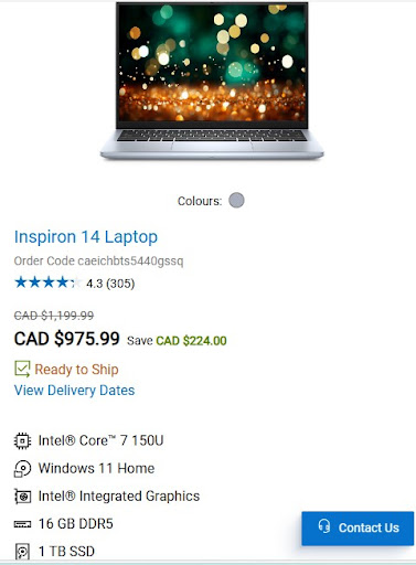Over lunch, I tried to see if I could purchase the laptop online and use the pickup option, but noticed that the price was $1299.99. I refreshed the browser many times but had the same result. I called the call centre and they verified that West Vancouver had stock and that the price was $899. I also checked the Dell website and confirmed that that same laptop was also on sale for $899 (Itâs $975 today Nov 30 2024 - please see attached photo).