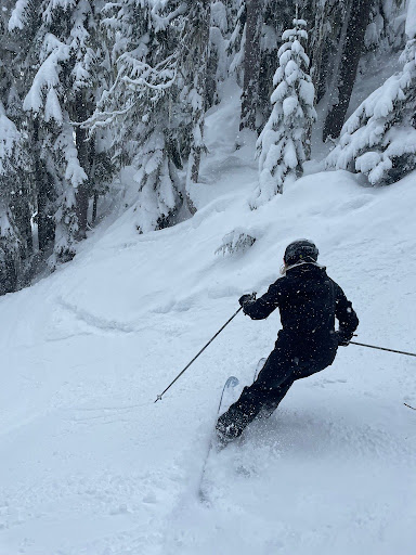 After getting sorted into skills and speed-based groups, we ended up with a 2:1 student:guide ratio and we got to work with Steve (Clarke), who found some amazing powder stashes that hadn't been ridden yet around Peak (we were up the 2nd day after a big storm).