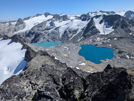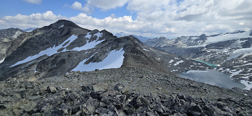 Hiked to Spearhead summit from top of Blackcomb gondola via Blackcomb lake. Despite moderate stats - a return distance of 10.5 km, and 710 m elevation gain, this is a challenging hike, as there is no trail beyond Blackcomb Lake, and you have to climb up a steep boulder field aka Body Bag Bowl with a lot of loose rocks, and scramble the rugged Spearhead ridge and the Spearhead summit is another steep boulder field to climb. You also have to make it back to gondola for the final download at 5:15 p.m. The fantastic views from the ridge and from the summit make...