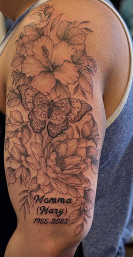 Read moreMy sister and I came down for her birthday to have Kaelyn do our matching tattoos that my sister had done a rough drawing of. Kael redrew and designed our original piece PERFECTLY! She is very talented, professional and super easy to communicate with to make your tattoo dream come true! I have never been more impressed with a tattoo before (and this was my 28th tat!!), there is genuinely not the slightest thing even remotely wrong with it what so ever! It is truly absolutely PERFECT in every way! My sister and I have received so many compliments on them, even from people who don’t have tattoos/care for them, have commented on how incredible the line work is. When my sister drew out tattoo, I knew exactly who we needed to do it. Kael is definitely beyond talented when it comes specifically to making sure those lines are crisp and straight! Everyone at the shop was super friendly and welcoming. It was overall an amazing experience and beautiful way to celebrate my sister birthday! 10/10, HIGHLY recommend! If it is your first time, Kaelyn is super friendly and gentle. I will be coming back here for all future tattoos! I attached photos of the original drawing versus the FINAL piece! Such a dream...