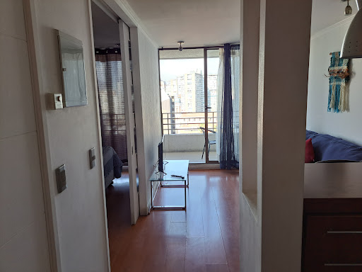 I rented an apartment here for one week, it is the second time I have done this type of accommodation in Chile. The location is magnificent, only seconds from a metro station that will take you anywhere. There is also a great variety of superb restaurants within minutes, as well a some casual places to eat. There is bank and a very nice grocery also within seconds. Now the negative. The apartment is not well maintained. There are 3 lights in the bathroom, only 1 is working. Several in the living room, again, some not working. The shower bracket was coming out of the wall, the handle to open the front door also coming off the door, and the soapdish in the bathroom also coming loose. Sr Pontoni should hire someone to come to this apartment and do some maintenance work. Also, it is only mediocre cleaning. When I arrived there was dust on the floors, the hanging light in the kitchen had never been cleaned, it looked like fur growing on it. Same with the fan in the bathroom-- never ever cleaned, layers of "fur" on the vent. But having said all this, would I stay here again, yes. It is about location. The bed was comfortable and the roof pool deck is wonderful. No one speaks any English at the office, but they were very nice and helpful. If you want location and can roll with these few items, stay here. If you want impeccable cleanliness, this is not for you. The last apartment I rented with another company had a table and chairs on the balcony as well as stereo in the main room and air conditioning-- this apartment had none of...