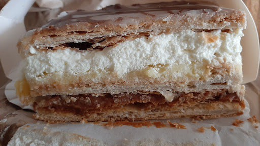 He comprado ya 4 veces y por desgracia debo decir que en tres oportunidades, los productos que he comprado me han salido añejos. A fines de marzo compré 3 pasteles y el de selva negra tenia el bizcocho añejo, luego, compré una torta para el día de la madre y también el bizcocho estaba añejo y por último, ayer compre unas palmeras de chocolate y también se encontraban duras y añejas. Entiendo que esta pastelería lleva muchos años en el mercado y me parece que deberían preocuparse mas por ese tema, ya que les hace un flaco favor como empresa. Los productos en si, son super buenos, lo puedo corroborar con la primera torta que compré, la que hicieron de hecho en el mismo momento y estaba exquisita, pero por desgracia, no puedo decir lo mismo con los otros productos que compré. Espero que mejoren eso a futuro, porque reitero, los productos que hacen,...