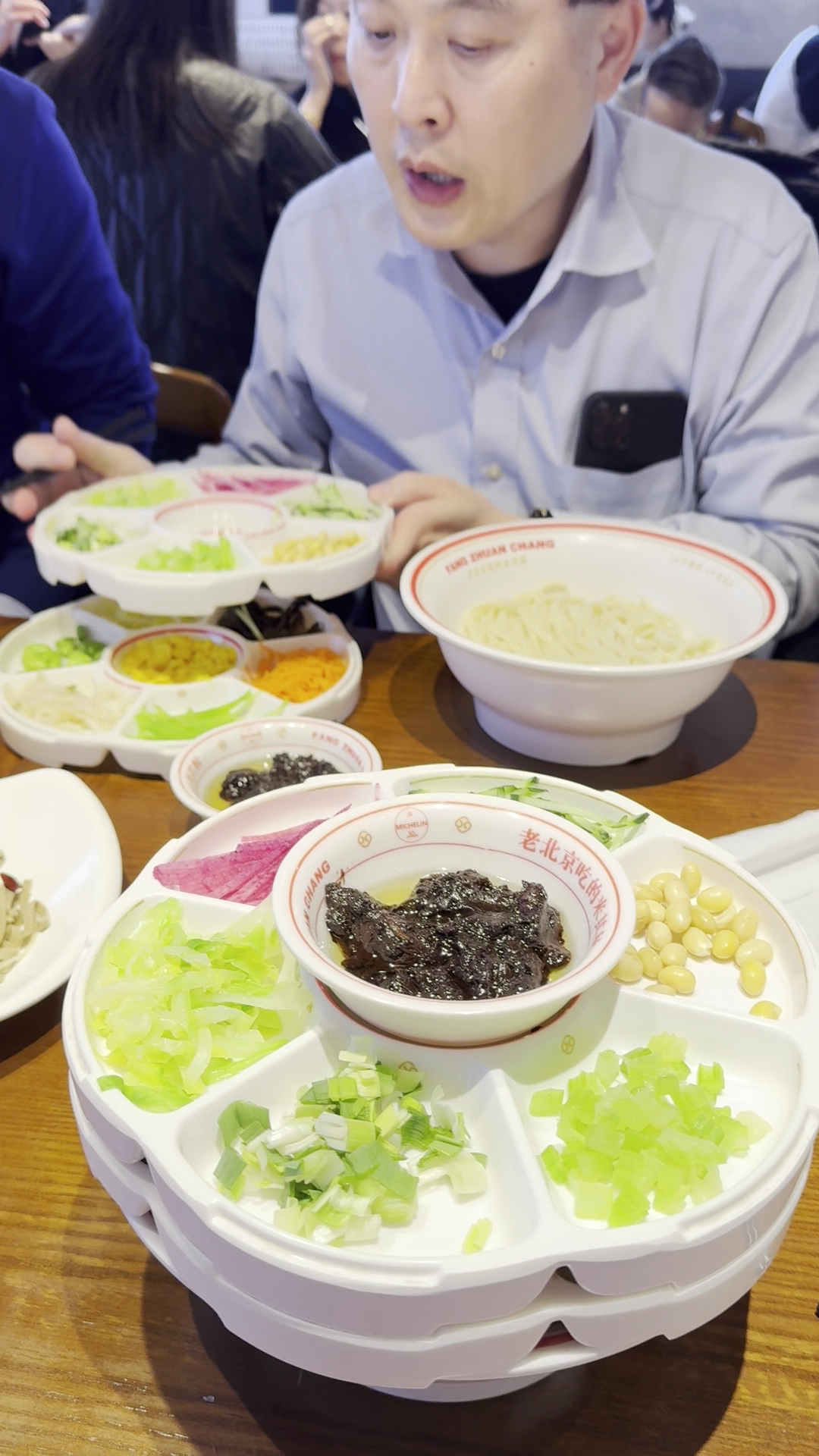 Located in the popular Nanluoguxiang area, Fang Zhuan Chang No. 69 Zhajiangmian has been recognized by the Michelin Guide for five consecutive years since 2020. We visited to try their traditional zhajiangmian (noodles), and the experience was both nostalgic and authentic. The zhajiangmian is served with two trays of condiments, including onions, bean sprouts, shredded bell pepper, shredded carrots, cucumber, and more, allowing diners to customize their noodles. The flavor is a true representation of old Beijing traditions, and the added perk of free noodle refills is a nice touch. The staff noticed that our group was made up of ‘foreigners’ and kindly demonstrated how to mix the noodles properly, which added a warm and personal touch to the experience. In addition, we tried the Peking duck, which complemented the meal well. The restaurant is extremely crowded, which speaks to its popularity, but the friendly and attentive staff manage the busy environment efficiently. While the food was enjoyable and offered a sense of authenticity, I did feel the experience was slightly overhyped given the accolades. Overall, it’s a pleasant spot for a taste of traditional Beijing cuisine in a...