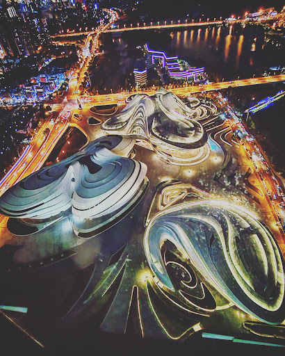 Beautiful project by world famous Zaha Hadid architects, although it could use a better maintenance, the overall complex is a great addition to the city. I've had the opportunity to watch a concert there and the interior is also splendid. You can't fly a drone there, but if you cross the bridge, on the opposite side, there's an island and a park with the best overall view of the entire project (and best place for both pictures and drone footage). The night lights could improve significantly, having seen how other cities in China have done it so well (Shanghai for example) I think this project could get a boost from a good lighting design for night time. It's pretty dark and dull when night falls. Regardless, it's totally...