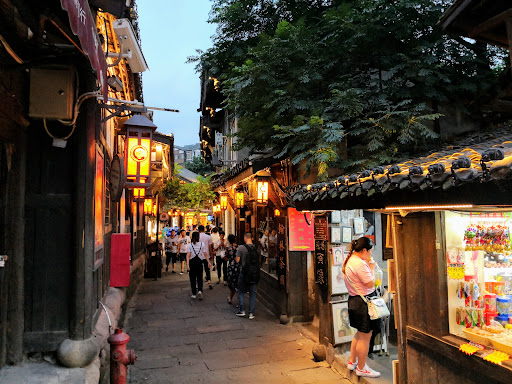 It's an old town in Chongqing city China,a lot of shops selling traditional Chinese snacks and cloths, very crowded of local peoples...