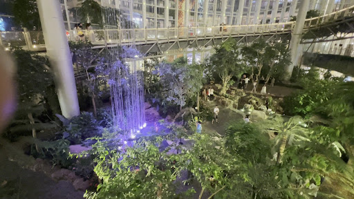 The Ring là trung tâm thương mại đẹp nhất tôi từng đến tại Trùng Khánh. Không gian được thiết kế tuyệt vời, kết hợp giữa thiên nhiên và công nghệ hiện đại. Đặc biệt ấn tượng với khu rừng trong nhà – Muguang Forest – nơi có cây xanh tầng tầng lớp lớp, thác nước mát rượi và ánh sáng tự nhiên len lỏi qua mái kính.