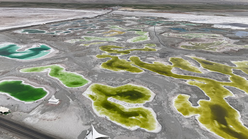 生態修復的當代寓言 翡翠湖見證著工業遺跡的綠色涅槃: • 傷痕轉化:昔日礦坑周邊曾遍布廢渣,2018年起政府覆土植草,引種耐鹽鹼的檉柳與白刺,形成環湖綠帶。 • 智能守護:2024年啟用「礦物濃度監測浮標」,實時調控遊客承載量;環保電瓶車取代燃油車,車轍印記限定于硬化路面。 • 鹽業新生:湖區東側設「礦物科普館」,展示從硼砂開采到提煉醫用鎂鹽的歷程,舊廠房改造的文創區更將鹽晶製成星空燈、鹽雕等藝術品。 • 行攝秘鑰:色彩捕手的朝聖 欲攬極致光影,須循自然節律: 時辰之鑰:盛夏正午(11:00-14:00)日照垂直,湖水色度飽和如寶石熔漿;雨季傍晚(19:00後)雷雨初歇,雙彩虹橫跨湖面機率最高。 構圖玄機:登臨湖北側觀景台,用長焦鏡頭壓縮鹽埂與雪峰距離;著純白衣裙立于「蒂芙尼池」中,倒影將切割出超現實色塊。 隱藏彩蛋:向導引領下深入西南「盲腸區」,可見罕見的粉紅鹽池——乃嗜鹽菌群與β-胡蘿蔔素共舞的杰作。