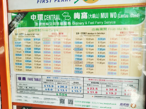 Ferry service is similar to the Star Ferry and can be boarded by way of ferry piers. Entry can be purchased by way of cash payment or with an Octopus Card. Route service schedules are available at the piers or on their website directly.