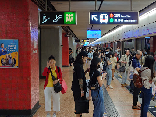 The station itself is well organised, especially when transferring from green line into red line or vice versa, it's mostly quick and walk distances are short. Station also has a toilet inside of the paid area. I like the simplicity and technical minimalism of design and also of the info displays and schemes with information about the train lines. No idea who designed it but it could be definitely inspiring for many other companies in CN and worldwide. I would appreciate if there are less commercial billboards and posters, respectively if half of it would be exposing some content related to social issues, arts, protection or nature, geography, science, instructions how to use toilets etc. Sometimes trains are too packed with passengers but I guess the station is not inflatable and they built it when HK had like around half of today's population, so it's understandable. Hope to see some more escalators added to...