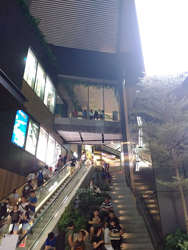 you will find on the main sports and sports related outlets plus s variety of restaurants building has numerous vertical gardens which creates an outdoor feeling. ample public spaces, seating areas areas in this multi levels mall. there are also a number of free phone charging stations. restrooms are extremely clean.