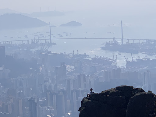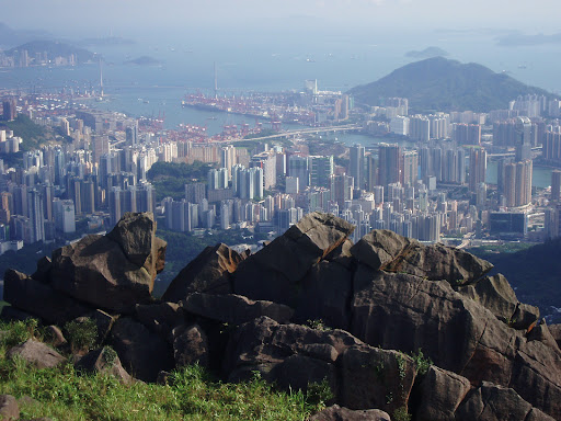 圆玄学院对面有楼梯上城门引水道,但方向不对,要另外找路。在寺院间鬼打墙,走进了老围里,终至寮屋,不通。走回西方寺,其东墙边有条上角山路,一路直走接小段楼梯才上到了引水道,已费时一个钟。左转几步,即见路牌指往龙门郊游径。有路牌的路,自然是郊游径水平,但在林中上行,沉闷而多蚊,想停下来喘气都不行。大半小时横过龙门郊游径,再上半小时,终于脱出树林,来到半山,与川龙坟场齐高。草坡边有大石,荃湾青马至大屿山一眼望尽,即刻放饭。 再上行几分钟即并入上次错走的电塔路,翻过一个小山包来到相思林径,很快就上到禾秧山石林区。石天门在路右约二十米,侧看只是一道不高的崖,有些象鼻子。来到其正面,只见一条裂隙从上而下,正中将石劈开,右下有红漆写着的“石天门”三字。崖下有平地,高临城门水塘,放眼则见狮子飞鹅,马鞍船湾,直至隐隐约约的东平洲,实在是又一处令人无可挑剔的赏景佳地。 在附近石林游荡一阵,回到石天门。其东南有一条脊线,正对着城门水塘下山。短草径还算好走,大半小时下到环山腰的相思林径。路口是一个顶位,地面正中嵌有一块书本大的石头。左转下山,十来分钟至一T字路口,依路牌右转城门方向。这一段准郊游径,也有一两处开扬地带,可以望到昂船洲大桥。在暮色中走着走着,突见一轮圆月挂在针山之巅,就象一枚大大的咸蛋黄,衬着碧青的天空,...
