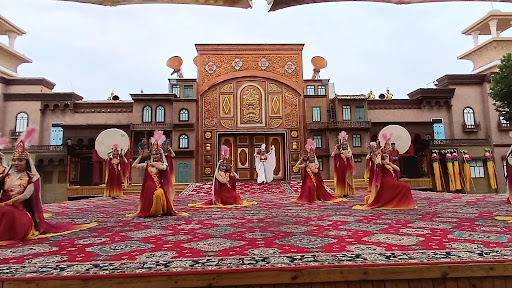 향비묘의 주인공 유수프 카스 하지프(Yusup Khass Hajip)는 11세기 트루크제국의 키르키스탄 카라카니드 칸국 수도인 Balasagun 출신의 시인입니다. Yusup Balasaguni는 Balasagun에서 역작 Kutadgu Bilig (쿠타드구 빌리그:왕의 영광에 대한 지혜) 작업을 시작했으며 카슈가르에서 완성했을 때 나이가 약 50세였고 55세이던 1,077년에 사망하여 이 곳에 묻혔다고 전해지며 1,640년 그의 삶을 기리기 위해 영묘가 조성되었다고 합니다. 무덤 자체는 크지 않지만 돔과 높은 미나렛을 둘러싼 푸른 타일로 아름답게 장식되어 있습니다. 유수프의 동상이 입구를 지키고 있어 향비묘를 찾는 사람들에게 유스프의 업적을 상기시켜 주고 있네요. 모스크 앞에는 청나라 건륭제와 향비의 기마상이 있어 두사람의 묘인가 착각하지만 모스크 안에는 아팍 호자(1622 ~ 1685)와 가문의 5대에 걸친 72구의 유해가 안치되어 있으며 향비는 바로 아팍 호자의 외손녀입니다. 호자 가문의 호화롭고 화려했던 삶을 엿볼수 있는 궁전과 루각 침실등이 보존되어 있다.