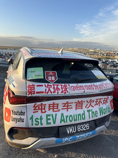 现在终于开进了第十国中亚的哈萨克斯坦,一共跑了4万公里。出来后,在外面拍照打卡,立马被门卫叫过来,亲自把照片和视频删除了,太可惜了。