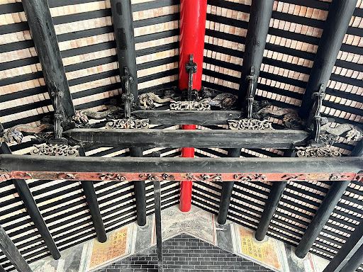 I could observe that the Liu Man Shek Tong Ancestral Hall is very special. There are many, many ancestral halls in the New Territories villages, and most of them come with a two-hall one-courtyard layout. The Liu Man Shek Tong Ancestral Hall is a three-court...