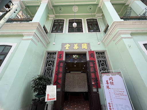 同善堂是澳門慈善機構,記述不同年代社會善長的事跡。牆上的相片 (左下) 正是各個善長的相片,條件是要捐 300 元澳門幣。現在看來好少錢,不過在民國年代,300 元已是大數目,捐得起的旅館老闆、商人、當舖老闆,甚至賭當老闆。右中是澳門現存最長的牌匾,共有 81 字。同善堂保留大量舊建築,正如六角地磚 (右下),由 1924...