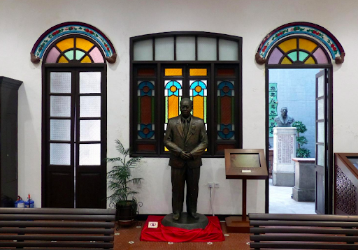 You can also see a few interesting items like the Porcelain Photo Display, the Confucius Shrine and the longest couplet in Macau (circa 1895) in the small courtyard. The building itself remains mostly in its original state, making it very interesting to look at. Here you can see 1920s Shanghai plaster columns, Chinese style hexagonal tiles and lovely Art Deco style window panes within the building as well as traditional European exterior and facade and classic Portuguese style pastel colour, which is commonly seen in Macau.