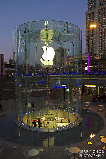 Read moreLandmark Apple Store in Shanghai. It features a similar architectural design as the flagship New York Apple store, but this one is a cylinder rather than New York's cube. The store is entirely downstairs.