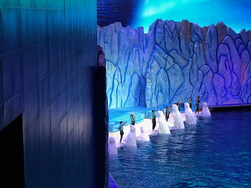 Visitors can see whale sharks, polar bears, penguins, dolphins, beluga whales and more at the park’s many themed area.