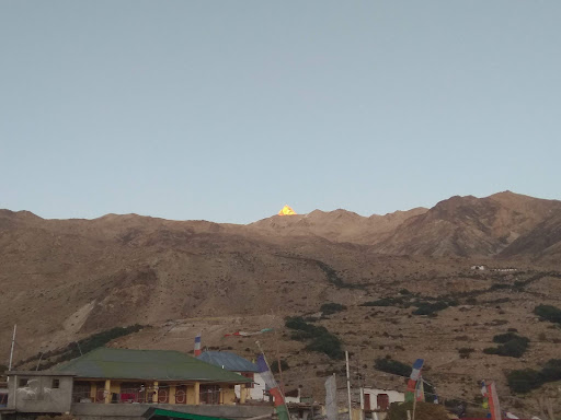 The highest peak is often obscured by clouds and is located about 2 km to the south of Peak 6791, a well known slightly shorter twin with a height of 6,791 m.Peak 6791 is widely referred to as Leo Pargial and has sufficient topographic prominence to be classified as a mountain in its own right.Nako┬аvillage is located on the slopes of the mountain, close to the India-Tibet border.