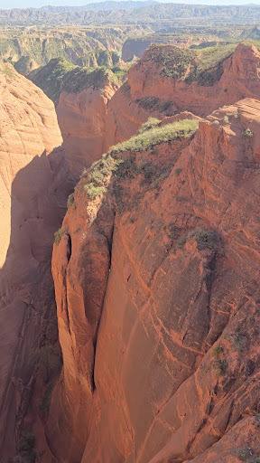 This is a scenic attraction in Jingbian County, Shaanxi Province. Amazing nature's process of erosion with wind and water over time on red sandstone creating a beautiful and unusual landscape. The bridge at the entrance of the attraction has a transparent glass bottom offering the visitors a terrific view of the valley....