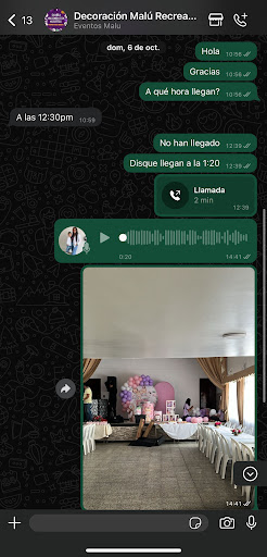 No puedo negar que una vez terminado quedó muy lindo pero me generó frustración que llegaran las personas y no estuviera listo por su impuntualidad. En ese momento escribí al WhatsApp y envié evidencia y NUNCA me respondieron. Al día siguiente me escribieron para “evaluar” pero tampoco respondieron… (adjunto evidencia)