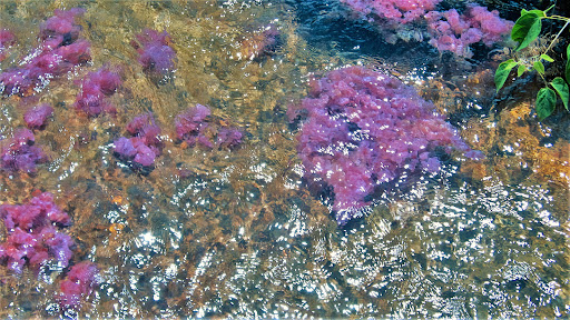 **The colors are produced during the reproductive process of the aquatic plants in the river, which are called Macarenia clavigera, a species of the riverweed family Podostemaceae.