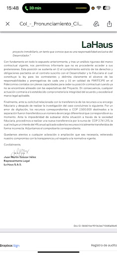 Confié en este proyecto no solo por el respaldo de La Haus, sino también porque promocionaron que el cantante Maluma había comprado en él, lo que, evidentemente, resultó ser puro marketing engañoso. Al buscar respuestas, un empleado de La Haus me dejó helada al decirme que ellos no tienen nada que ver con el proyecto en este punto, y que simplemente debo seguir pagando las cuotas y esperar a que, mágicamente, en algún momento el proyecto sea viable. Es inaceptable que me pidan pagar a ciegas mientras ignoran por completo mi incertidumbre y mi descontento.