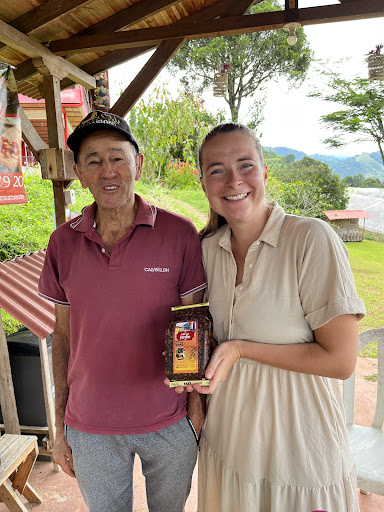 La experiencia fue completa y auténtica. Nos vistieron con trajes típicos de cafetaleros, los 'Andariegos' y 'Chapoleras', y nos guiaron a través de actividades prácticas: recoger los frutos, despulparlos, lavarlos (para aquellos que requieren este proceso), secarlos, tostarlos, molerlos y, finalmente, prepararlos para degustar una taza perfecta de café.