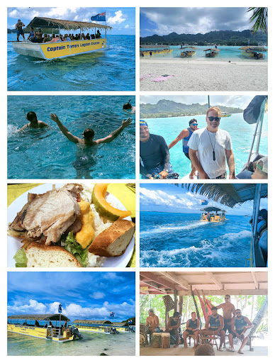 We toured the beautiful Muri Lagoon on a glass-bottom boat. Snorkelled in the marine reserve with tropical fish and giant clams. Visited Motu Koromiri and enjoyed an island-style fresh fish open fire BBQ served with salads and seasonal fruit 🤤♥️⛱️ the crew were good-looking, entertaining, amazing and had us all laughing and smiling all day long!! 💯