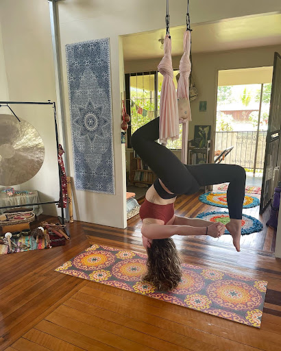 I first took a private yoga class with Reya and loved her use of aerial silks! I had never done aerial yoga but Reya made it very easy to get the hang of. She also showed me around her stunning garden which she planted herself. I then signed up for a sound bath with her (something I had never done before) which was a truly incredible experience. As I rested in a fabric hammock, she played a variety of instruments around me and I felt transported to the past and the future at times, and deeply present at other times.