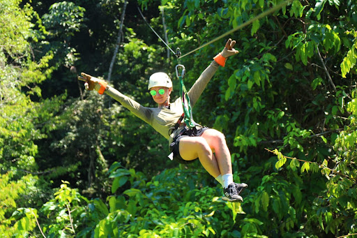 Zip lining is an extremely fun and exciting experience. I was very scared at first and bravely rode all the lines. In the end, I was downright obsessed! I loved all nine of the superb lines. I genuinely enjoyed the whole tour, even the hikes, which were conveniently short, because of all the animals we saw and all the information we were given about the environment around us. Also, the guides are really nice. They showed us cool animals such as a tiny poison dart frog, a camouflaged green parrot, and an extraordinary toucan. On one of the lines you get to go down the line upside-down! Awesome, right? I was anxious about it when they announced what we were going, but it was an opportunity so I decided to try it. Surprisingly, in the end, I loved it so much I rode upside-down again on the next line, spinning, too! One of the best things I liked about zip lining is the variety. I really liked the racing, going upside-down, spinning, and that the zip lines start up high so they are naturally pretty long. The two other cool things, which make this excursion a three in one, are repelling and the Tarzan swing. The repelling was cool because you are secured in well and you don't have to worry about anything while you're slowly lowered down. They Tarzan swing is really cool, even though it's a little bit scary at first, but it's really fun after the first a little bit scary part. I even got to go upside-down while swinging! All in all, those two activities were exhilarating and fun. The last thing you do is eat lunch. It was very refreshing and authentic. They also supply you with "exotic juice" AKA peach iced tea. Overall, this zip lining excursion i an extremely fun and exciting...