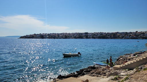 Kleiner, künstlich aufgeschütteter Kieselstrand. An sich sehr schön und ein Besuch lohnt sich für Sonnen und Baden sehr. Der Verleihstand für Boards und Tretboote ist allerdings der Grund für die 1-Sterne Bewertung. Wir wurden vom Betreiber beschuldigt, die Verleihzeit überschritten zu haben und nach Vorlage eines Beweises unsererseits hat er weiterhin auf eine Nachzahlung bestanden und uns letztlich sogar BEDROHT. Das hat mit Anstand nichts zu tun, vor Allem vor Gästen, die ihm sein Leben finanzieren. Ich gebe eine ausdrückliche Empfehlung, diesen Stand zu meiden und dem Herren kein Geld zu geben. Und sollten Sie sich doch dazu entscheiden, klären Sie unbedingt die Verleihzeit vorher ab. Wir haben letztlich aufgrund der Drohung den doppelten Preis gezahlt, werden diesen Strand aber niemals wieder besuchen.