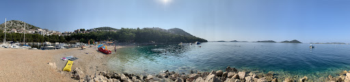 Read moreПляж у причала, с пологим спуском в воду и галькой, для родителей с детьми, небольшой. В выходные довольно много людей и не очень много места для парковки. Есть душ, платный (2 куна за 30 сек), но кран внизу бесплатный, можно руки или ноги помыть. Но дальше вдоль берега в обе стороны есть более протяжённые крутые спуски со ступеньками, площадками, скамейками и тенью сосновых деревьев. Очень живописно, чистая вода. Спокойное место, без проката скутеров и прочей шумной вони. Цикады трещат без умолку) Есть, конечно, морские ежи на дне, но возле спусков их убирают, так что можно даже без...