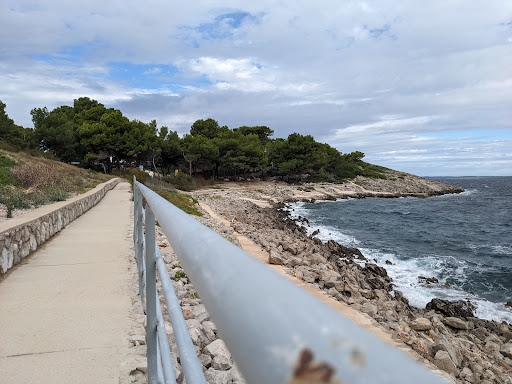 Read moreSpiaggia di scogli dove sono state ricavate piccole postazioni piane o quasi e rivestite con beola. Gli accessi in acqua sono serviti da scalette verticali o corrimano in acciaio inox. La spiaggia è servita da bar sotto ad una piccola pineta, bagni pubblici puliti, anche per disabili, doccia per rinfrescarsi e separé per cambio costume. Da qui a Sv. Martin la scogliera e l'acqua è tutta simile ma questa zona è l'unica che offre bagni e bar. Acqua...