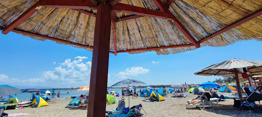 Read moreWer in Kroatien venetisch/italienische Verhältnisse sucht, wird hier fündig. Toller riesiger (echter) und erstaunlich sauberer Sandstrand mit viel Platz. Für Familien mit kleinen Kindern ideal, da man schon eine Strecke durchs Wasser laufen muss und Kniehöhe zu erreichen. Entgegen der klassischen Strände in Jesolo & Co, hat man hier einen grandiosen Ausblick auf das Velebitgebirge. Parkplatz ist kostenpflichtig aber leistbar. Wer will kann sich in den umliegenden Wasserlachen mit schwarzem, lehmig wirkenden Schlamm beschmieren, was nicht nur witzig ist, sondern tatsächlich der Haut gut tut. Ob das auch gesund für jeden Hauttyp ist, entzieht sich meiner Kenntnis. Wir haben es überlebt. :-) 2 kleine Lokale bieten Möglichkeit für Snacks und Getränke. Eigentlich ein unerwartet schöner Ort zum Sonnen und Baden, aber nicht wirklich zum schwimmen :-) und die Tauerbrille könnt ihr auch getrost im Auto lassen. Wie erwähnt, es ist wie an den Stränden Venetiens. Sogar Schirme kann man...