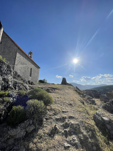 Przyjemny spacer pod górę, nie potrzebna kondycja, na samej górze pozostałości twierdzy, a raczej jej murów. Po środku wzgórza stoi kamienny kościółek. Ja do twierdzy doszłam od strony cmentarza - przy jego murach można zaparkować auto i stąd prowadzą schody doprowadzając nas do 7-ej stacji drogi krzyżowej. Należy skręcić w prawo i za 8-ą stacją schodki prowadzą pod góre i nimi dochodzi się na szczyt. Mozna też przy stacji 7-ej skręcc w prawo i trawersem dojsc do ścieżki prowadzącej na szczyt. Tak naprawdę to Stary Grad i twierdza są w tym...