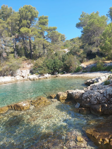 Read moreBardzo ładna i cicha zatoczka. Plaża częściowo kamienista (drobne kamienie), częściowo skalista. Wejście do wody po kamieniach, typowo chorwackie. Od strony lądu dostęp do zatoczki jest dosyć trudny. Ostatni fragment dojazdu wąski, dosyć stromy z dużymi wybojami. Samochód bez 4x4 może mieć problem, ale dużo zależy od umiejętności kierowcy. Po bokach drogi rosną krzewy o bardzo twardych gałęziach, które z łatwością głęboko porysują samochód. Na samym końcu dojazdu droga się poszerza i można swobodnie zaparkować 3-4 pojazdy. Później zejście w dół ok. 50 metrów leśną ścieżką na plażę. Nagrodą jest plażowanie w bardzo idyllicznych...