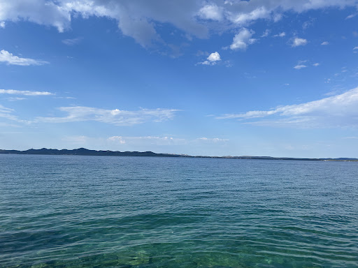 This small beach is perfect. You can lay on the pebbles or on concrete. There are a lot of threes so a lot of shadow. The water is super clear and calm. It is a beach were locals come and not too crowded. The touristic beach is one...
