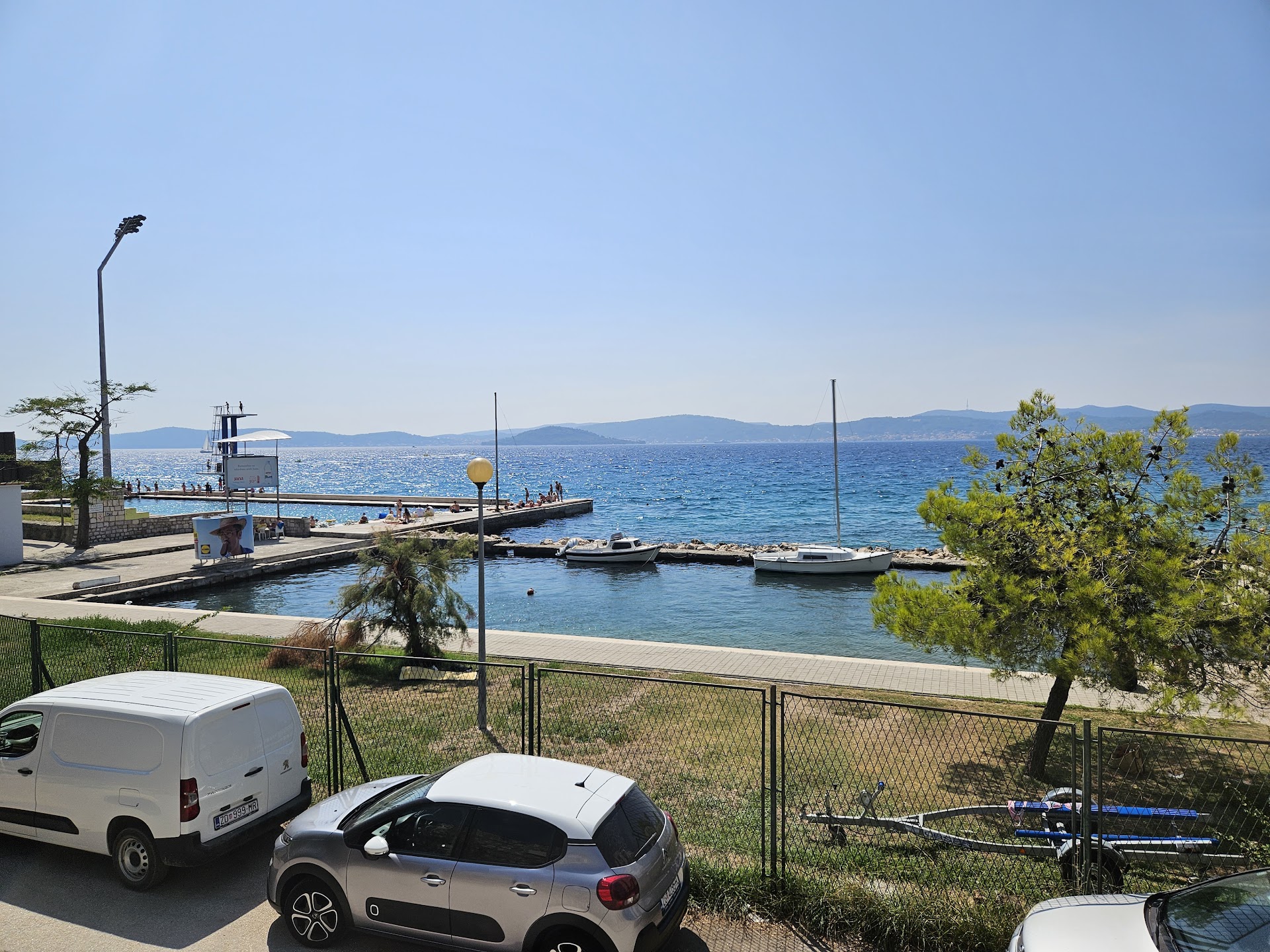Read moreLa Golden Beach di Zadar, situata proprio accanto alla piscina naturale di Kolovare, è un luogo incantevole e suggestivo. Pur non essendo una spiaggia tradizionale con sabbia e ampi spazi per stendersi, ha il suo fascino unico che la rende speciale. Più simile a una piattaforma, o una lunga panchina rocciosa, la Golden Beach offre un perfetto punto di accesso al mare, ideale per chi vuole tuffarsi direttamente nelle acque cristalline dell’Adriatico. La particolarità di questo posto sta nella sua posizione privilegiata, vicina alla piscina naturale, che aggiunge un tocco di esclusività. Nonostante non ci sia spazio per sdraiarsi come in una spiaggia tipica, l’atmosfera è rilassante e l’accesso diretto al mare rende il tutto perfetto per chi ama nuotare e rinfrescarsi rapidamente. Le acque qui sono incredibilmente limpide e pulite, e la sensazione di immergersi direttamente dal bordo di questa "spiaggia" rocciosa è impagabile. La Golden Beach è particolarmente amata da chi preferisce tuffarsi piuttosto che sdraiarsi al sole, e la sua semplicità la rende un luogo di incontro speciale per i locali e i turisti in cerca di un’esperienza autentica e diversa dal solito. In definitiva, se stai cercando un posto dove rilassarti in riva al mare senza dover stendere il tuo telo sulla sabbia, la Golden Beach è una bellissima opzione, con un mare spettacolare che ti invita a un tuffo rinfrescante in qualsiasi momento...