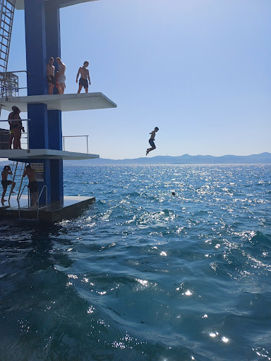 Read moreLa piscina naturale di Kolovare, situata lungo il lungomare di Zadar, è un vero gioiello per gli amanti del mare e del relax. Questo specchio d'acqua, delimitato naturalmente dalle rocce, offre un ambiente unico e perfetto per chi desidera nuotare in acque limpide e tranquille senza allontanarsi troppo dalla città. La zona è facilmente accessibile, e la piscina rappresenta un'attrazione molto amata sia dai residenti che dai turisti. Una delle caratteristiche più divertenti è la presenza di un trampolino costruito proprio accanto alla piscina naturale, un vero punto di svago per chi cerca emozioni forti. Tuffarsi da qui nelle acque profonde e fresche del mare è un'esperienza entusiasmante, soprattutto durante le calde giornate estive. Il trampolino è particolarmente amato dai visitatori più giovani o da chiunque voglia aggiungere un tocco di adrenalina alla propria giornata al mare. La piscina naturale di Kolovare è un luogo ideale per famiglie, coppie e gruppi di amici in cerca di tranquillità o divertimento. Il mare è cristallino e la posizione lungo il lungomare offre viste spettacolari, rendendolo il posto perfetto per rilassarsi o godersi un tuffo rinfrescante. Sebbene la spiaggia circostante sia rocciosa, la zona è attrezzata per accogliere i bagnanti, e le rocce sono levigate, rendendo facile l'accesso al mare. In conclusione, la piscina naturale di Kolovare con il suo trampolino è una delle mete imperdibili per chi visita Zadar, offrendo un mix perfetto di relax, bellezza naturale e divertimento. Ideale per trascorrere una giornata diversa dal solito, immersi nella...