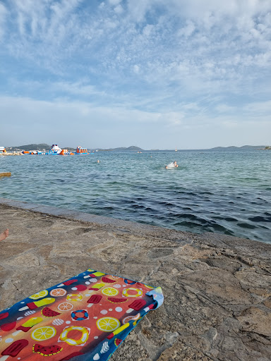 Puno velikog kamenja u moru,nije bas pogodna za djecu,lezaljke i suncobrani se placaju 7 €.. nema prirodnog hlada,i stoga se primorani isto i uzeti,ili ponijeti licno svoje.. ujutro je plaža već skoro puna,jer se mjesta unaprijed zauzmu peškirima..tuš koji je besplatan je podaleko,ali imaju još 2-3 koja se plaćaju..restorani i kafići uz plažu,cijene su tu i tamo,moje iskustvo što se tiče hrane najbolja pizza u Leut...