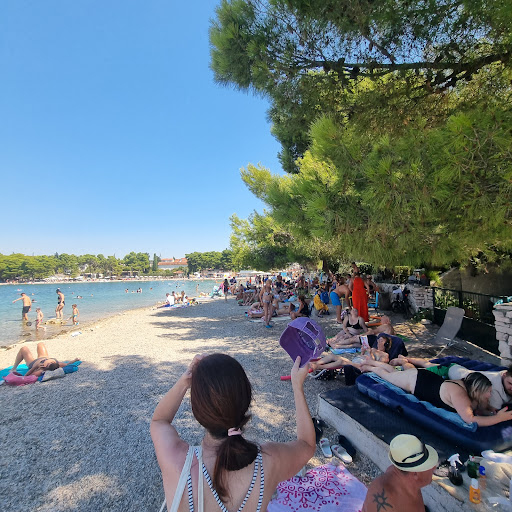 Es algo inaudito, para cualquier persona que venga de fuera de Croacia creo que es volver a los años 70-80, llegas a un Parking, pagas 8€ aparcas entre pinares y edificios semi en ruinas sucios, basura en el suelo colillas (vamos, como la media de Croacia) Playa mediocre como casi todas las de Croacia exceptuando alguna de las islas, llena de atracciones para niños, no hay lugar para poner la toalla, sinceramente no recomiendo ir a alguien con algo de sentido común. El agua parece un charco con olor a agua estancada, no se mueve la corriente del mar y prácticamente no hay viendo (al menos el día que hemos estado) 1 hora hemos durado y porque de esa hora 40 minutos los hemos pasado tomando un café en un chiringuito que es lo más aceptable de dicho lugar. La costa de Croacia desde Split hasta Zagreb es una tomadura de pelo para alguien que viene playas de Cádiz, o cualquiera del litoral español, mediterráneo atlántico o cántabro, suciedad a raudales, colillas y basura por el suelo, es una lástima. EL Croata no es un anfitrión sociable en general, en ocasiones hasta desagradable, como ya había leído en otros comentarios, parece que no les gusta el turismo. Sirva esto para cualquiera que piense que Croacia es un país divino en general, Lo es, pero a mi juicio, Dubrovnik, Zadar capital, las Islas Korkula, Hvar y Brac, Trogir, y Split. MERECEN...
