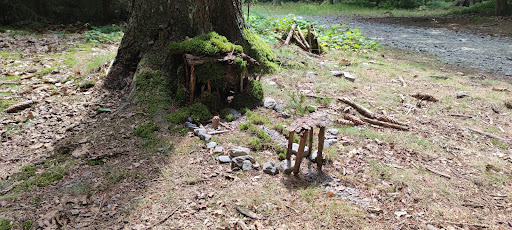 Pokud jdete po žluté z parkoviště, potkáte Vesničku skřítků - kousek pod vrcholem je v.lese postavena spousta domečků pro skřítky. Děti to zabaví...