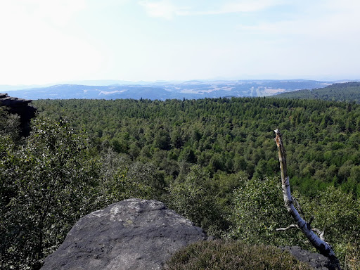 Děčínský Sněžník (723 m above sea level) is our highest table top. It is about 7 km west to the north-west of Děčín and there is a nice stone lookout tower with a guest house built on it´s top. Děčínský Sněžník will captivate you with its enchanting view of the Lužické Mountains and Czech-Saxon Switzerland, but also for it´s unique air flow. Thanks to thermal climbing streams around the mountain table, air flows from the North Sea with local flows, creating so-called "wind-spa". The mountain, made up of turquoise sandstone, is almost entirely wooded, most of its slopes are covered with spruce vegetation, to a lesser extent pine, larch, beech, birch and crane are also typical for the top part. The peak of the mountain occupies a vast platform of approximately 1600 x 600 meters, slightly bending to the northeast to the...