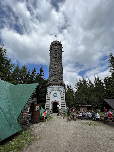 Pod rozhlednou je horská chata. V ní jsem se setkal s dvěma sympatickými majiteli a pokecali o poměrech a jak to tak chodí na světě. Tím naznačuji, že hory tady mají přívětivou tvář a na zdravotního panáčka z bylinek si můžete vybrat z několika velikostí. Jen upozorňuju ze zkušenosti, že malé je pro ně opravdu malé a velké jenom o něco větší – takže se nebojte své chutě hned násobit. Doporučuji utopence jejich výroby. Křupající delikatesa.