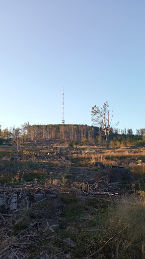 Stanete-li po výstupu na vrcholové plošině kopce utvářeného horninou s názvem granit, máte před sebou vcelku rozsáhlý areál Českých radiokomunikací s excelentní vysílací věží vysokou asi 167 m a pod ní s budovou technického zázemí připomínající svým architektonickým řešením horský penzion. Vysílač byl v této podobě dostavěn v roce 1989, předtím však již zde stála vysílací věž ze 60. let 20. století.