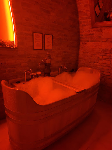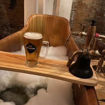 Read moreIt was one of the 1st things we booked for our visit to Prague . We pre-booked it online a couple of weeks in advance but could book a few days prior. Different options you can choose from. The experience is interesting, and I never knew how good hops were for your skin & hair. There are separate restrooms/showers and locker/changing room, but both are small, and if someone walks in, you're exposed to anyone walking by. Unfortunately, they do allow kids, so experience was haunted by that, not to mention that it doesn't seem like the right place for children. Spas in general, which is what they are trying to do, aren't for children. Did the bath with unlimited beer and had an hour to soak and drink. Overall, it was an interesting experience but if you miss it, don't really think you're going...
